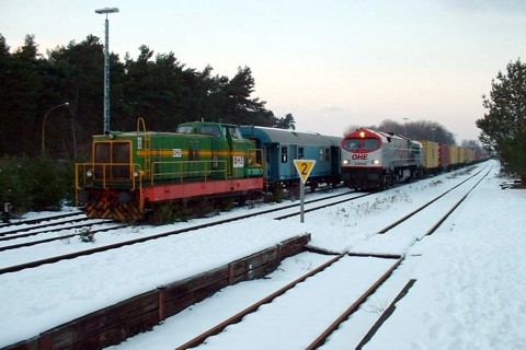 AVL 1200 69 wird am 6.3.05 nach Lüneburg überführt und begegnete dabei in Melbeck-Embsen der OHE 3300 92. Foto: Klaus Schulmann