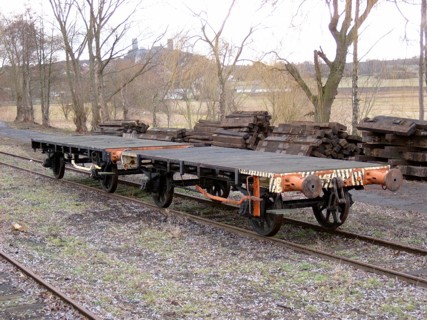 Die beiden EBN Flachwagen Nummer 1 und 2 am 16. Januar 2004 in Münzenberg. Foto: Mathias Bootz