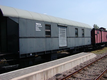 MECL Wohn-Werkstattwagen 75 156 Sbr am 03.08.2004 in Losheim. Foto: Koos Pols