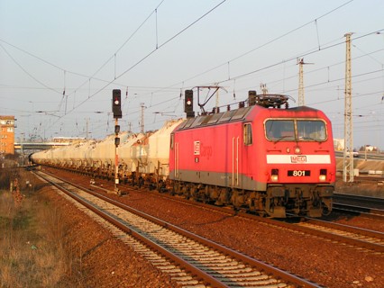 MEG 801 durchfährt am 30.03.2004 mit einem Zementzug den