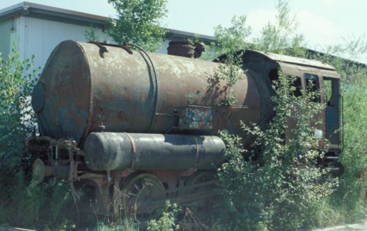 Die Dampfspeicherlok versuchte sich zwar zu verstecken, hatte aber keine Chance (23.8.00 in Mittelbiberach). Foto: A. Bückle