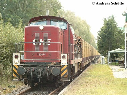 OHE 1600 74 am 19.9.04 mit einem Holzzug in Vorwalsrode. Foto: Andreas Schütte