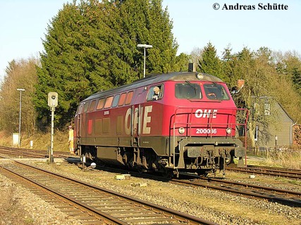 OHE 2000 86 rangiert am 1.4.05 im Bahnhof Hützel. Foto: Andreas Schütte