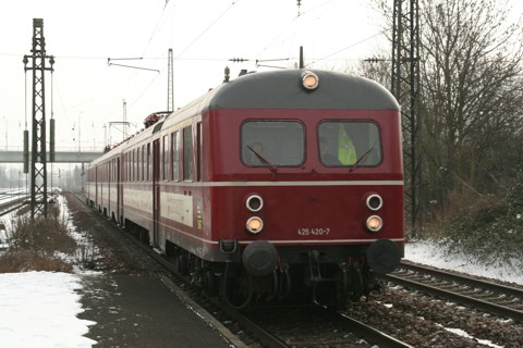 Die SVG-Garnitur aus 425 120, 825 020 und 425 420 am 4. Februar 2006 in Ludwigshafen-Oggersheim. Foto: Wolfgang Mauser